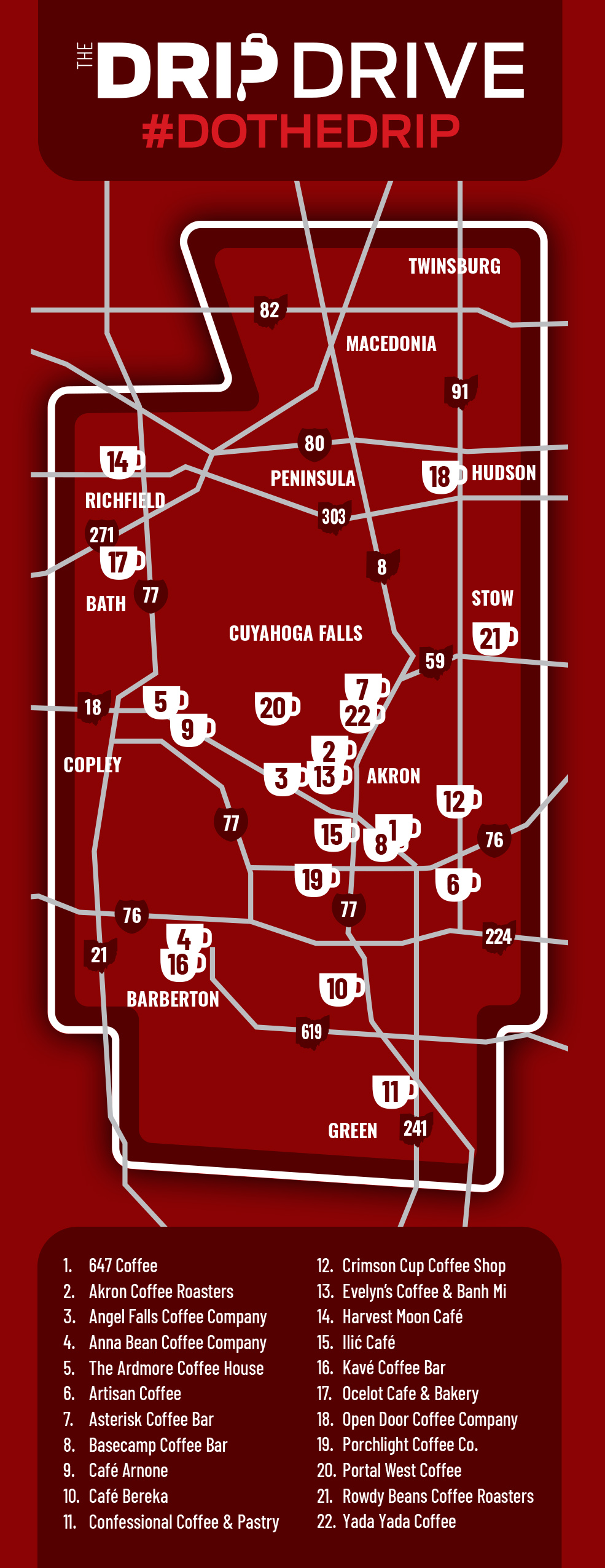 Use the passport (you'll pick one up at your first stop) as a guide to visit the 22 official stops throughout Akron/Summit County, Ohio.